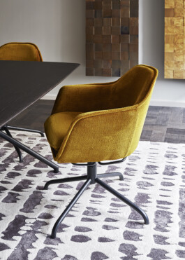 The defining feature of Chair Sophie is the oversized piping that runs seamlessly around the entire silhouette, tracing its curves and framing it. It gives the impression of a sculpted shell. Introducing the Sophie chair with the patented "Move-Swivel Function" that offers a unique seating experience for relaxed and fatigue-free sitting. Available in leather, fabric, or a stylish combination of leather on the exterior and fabric on the inside.