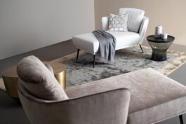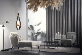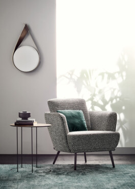 NONA Upholstered Furniture, a playful blend between a chaise longue and a lounge chair. The curved backrest allows for various seating or reclining positions, offering versatility in use. Whether as a standalone favorite piece or multiplied in a spacious living area. The NONA chair complements the chaise longue while confidently pairing with various other upholstered furniture pieces. Elegant feet in smoky brown or black impart a sense of lightness to the ensemble.